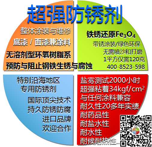 渗透到钢铁的锈层,将锈表面化学反应转换为磁铁矿( Fe304),和一直以来的防锈涂料相比大幅度的提高了防腐蚀性。